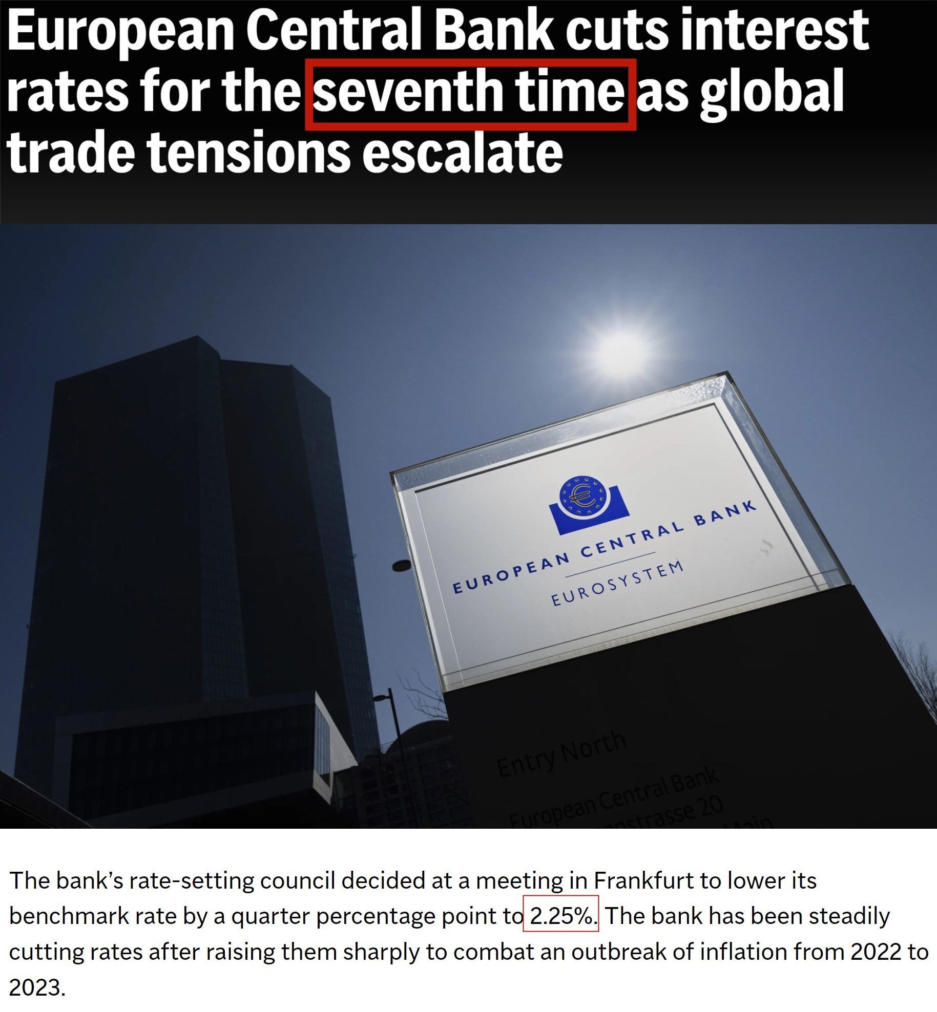 值得注意的是,在特朗普指责美联储不同意降息的时候,欧洲央行已经被迫行动起来了。