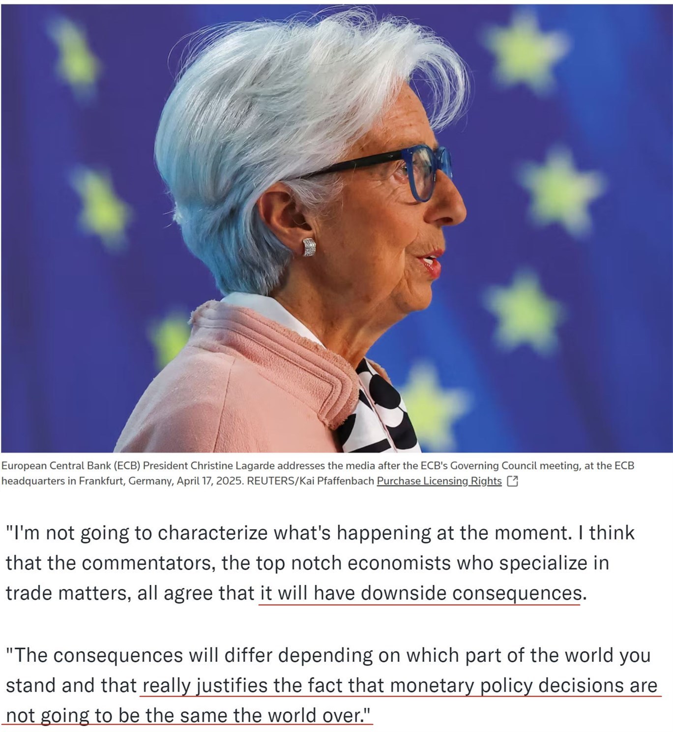 “我不会给现状下定义,贸易专家和评论人士都同意,关税战将带来负面后果。但负面影响各不相同,取决于你的立场。这也证明了这样一个事实,世界各地的货币政策决策不会相同。”