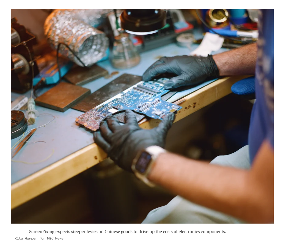 但小店的老板内特·迈纳表示,美国总统特朗普不断升级的关税战威胁着这些成果——因为店里几乎所有的电子设备零部件都来自中国。迈纳说,企业可能会面临不得不从苹果直接采购更多零部件的情况,但是这些零部件的价格会高得多。“这或将导致企业破产。”