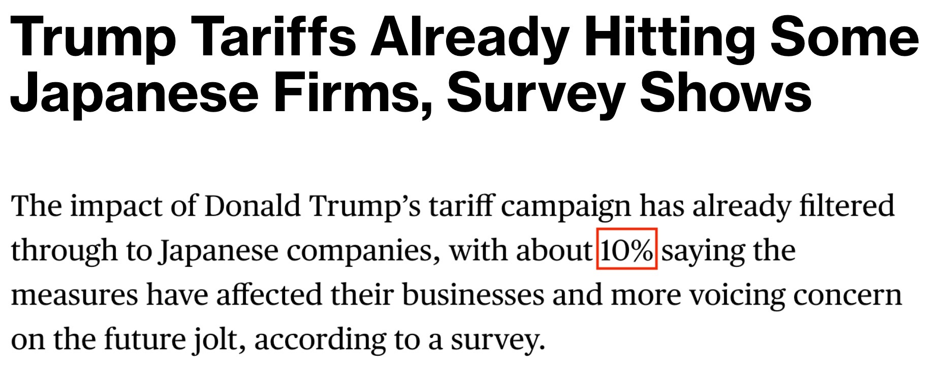 根据日本财务省22日公布的最新调查结果,约10%的日本企业表示,美国的关税措施已经直接影响到了它们的业务;更多的企业则对未来的关税冲击感到恐慌。