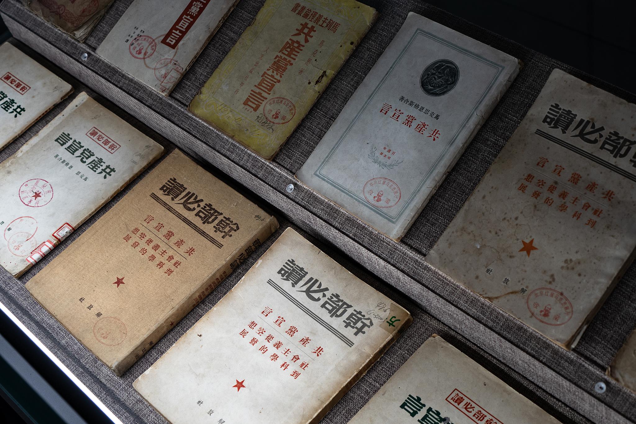 △中共一大会址纪念馆馆藏的各种版本的《共产党宣言》