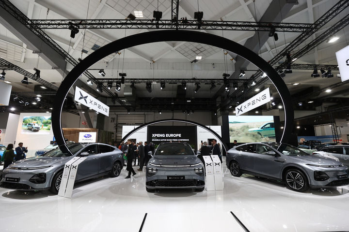 2025年1月10日,在比利时布鲁塞尔,人们参观2025布鲁塞尔车展上的小鹏汽车展区。新华社记者 赵丁喆 摄