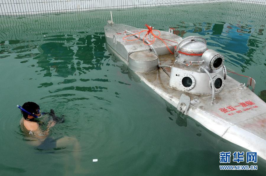 新华网 2012年05月09日 湖北省武汉下岗工人张五一自2008年开始研制“潜艇”,几年来掏出全部家底、四处借钱,前后投入300万元,历经数次失败,终于制造出几艘有模有样的“民用潜艇”。5月8日,在众多媒体和客商的注视下,张五一的“潜艇”在一个15米宽、8米长、4.5米深的水池里进行“首航”,成功完成了第一次水下作业演示。张五一介绍说,他的“潜艇”可下潜50米到100米水深,主要用于海水养殖等水下作业,可替代潜水员作业。新华社记者 皮曙初 摄