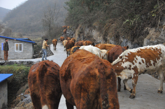 靠山吃山,勤劳致富。午后,满是欢喜的张永常穿着满是泥泞胶皮鞋,开始忙着放牛。一头头健壮的牛,争先恐后地往山上跑,此起彼伏牛叫声响彻山谷。