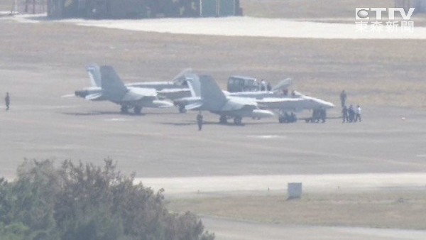 据台湾“中央社”报道,两架美国F-18战机1日因机械因素迫降台南基地,美方派专人搭乘C-130军机带器材前来维修,2日晚间8时35分抵台。台空军官员表示,台南空军基地提供后勤支持,F-18战机一旦修复,将会立刻飞离台湾。不过,由于其中一架战机发动机受损严重,晚间维修有难度,美方人员2日晚将在台湾过夜。
