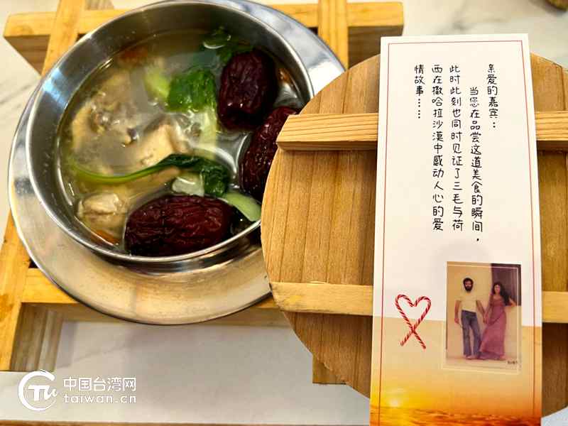 来自台湾新北的叶俊维,父亲是舟山籍老兵,在台湾当了二十多年五星饭店主厨,受三毛故乡情的感召,回到父亲的故乡创业,在三毛文化村开了一家台菜餐厅,成为文化村里的网红打卡点,他根据三毛游记里的记载研发的三毛在撒哈拉做的第一道中国菜:台湾粉丝鸡汤,是三毛粉丝到小沙打卡必吃的一道菜。叶俊维说,要把小沙打造成两岸三毛迷共同的精神家园,传播三毛文化,延续三毛的故乡情,台湾人当然不能缺席,他希望有更多台青到小沙来围绕三毛文化发展文创事业,让粉丝在小沙能够感受到更加立体的三毛。