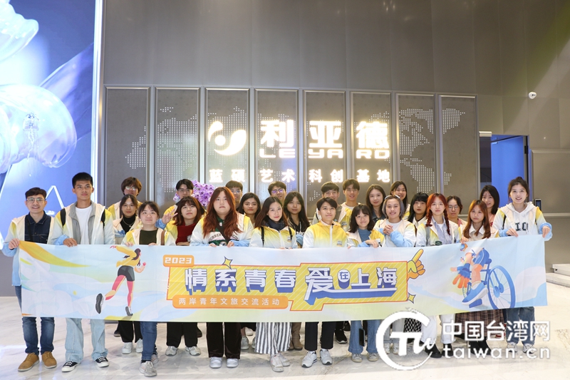 两岸青年参观利亚德蓝硕艺术科创基地并合影。(中国台湾网 刘赛飞 摄)