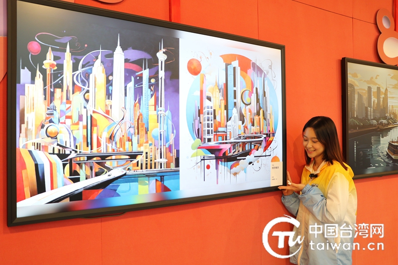 台湾朝阳科技大学学生林雅萱展示获得“最佳设计作品”奖的作品《缤纷城市》。(中国台湾网 刘赛飞 摄)
