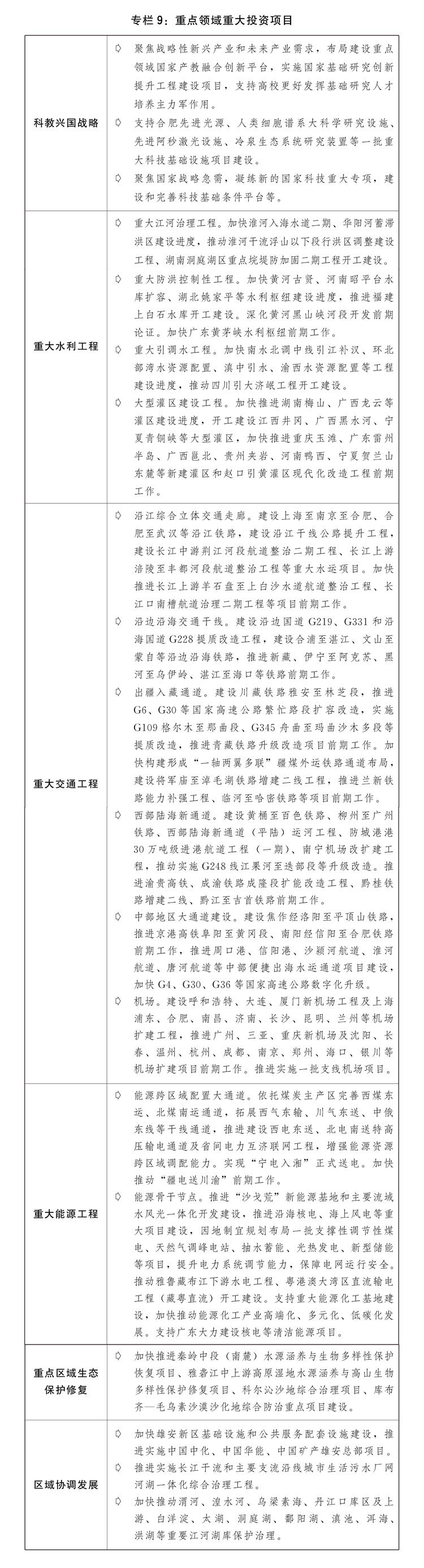 二是进一步推动区域间联动融合发展。发挥区域战略叠加效应,进一步挖掘释放各地发展潜力。提升京津冀、长三角、粤港澳大湾区等经济发展优势区域的创新能力,共同抓好长江、黄河大保护。深化东、中、西、东北地区产业协作,强化机制建设、平台搭建、政策设计,促进产业优化布局和梯度有序转移。推动西部陆海新通道与长江黄金水道、中欧班列相互联通,深入实施东数西算、西电东送、西气东输、川气东送等工程,推进沿海、沿江高铁建设,加强长三角、京津冀、粤港澳大湾区世界级机场群跨区域合作,优化港口布局,提升资源跨区域调配能力。推动苏皖鲁豫、陕晋豫等交界区域合作发展。支持区域间通过委托管理、投资合作等多种形式建设合作园区。推动完善区域合作发展机制,促进区域间科创产业对接协作、生态环境共保联治、公共服务便利共享。强化区域战略融合发展的法治、人才、用地、资金等保障。