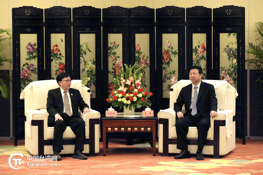 4月21日,宋涛会见了前来参加活动的两岸企业家峰会台湾方面理事长刘兆玄一行。(中国台湾网记者 尹赛楠 摄)
