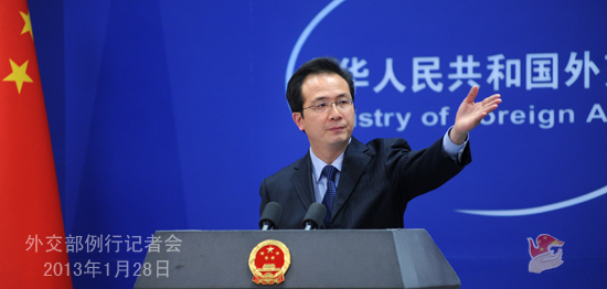 2013年1月28日,外交部发言人洪磊主持例行记者会。