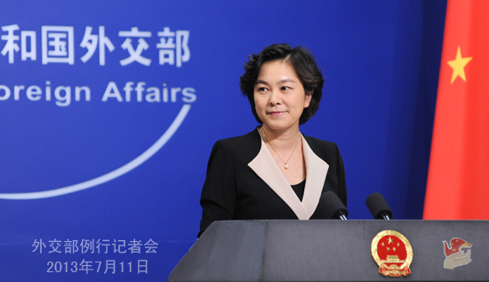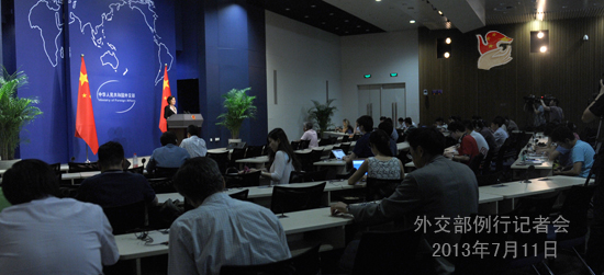 2013年7月11日,外交部发言人华春莹主持例行记者会。