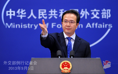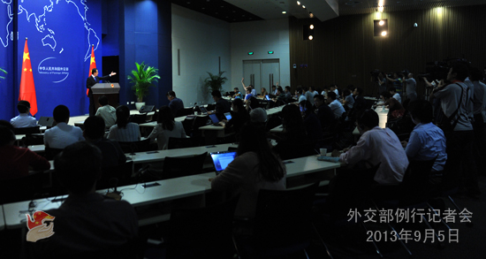 2013年9月5日,外交部发言人洪磊主持例行记者会。