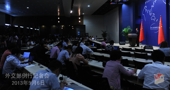 2013年9月6日,外交部发言人洪磊主持例行记者会。