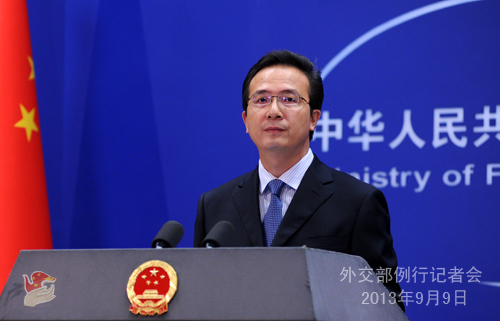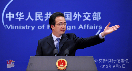 2013年9月9日,外交部发言人洪磊主持例行记者会。