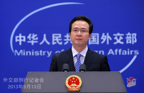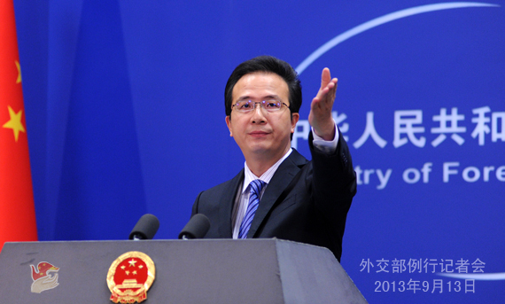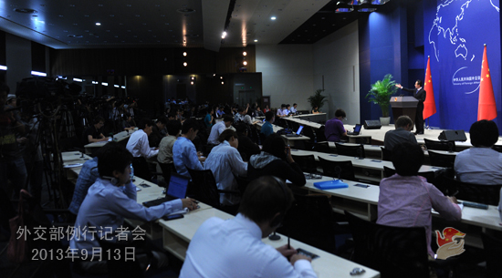 2013年9月13日,外交部发言人洪磊主持例行记者会。