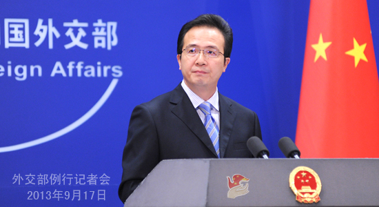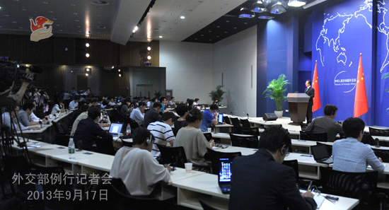 2013年9月17日,外交部发言人洪磊主持例行记者会。