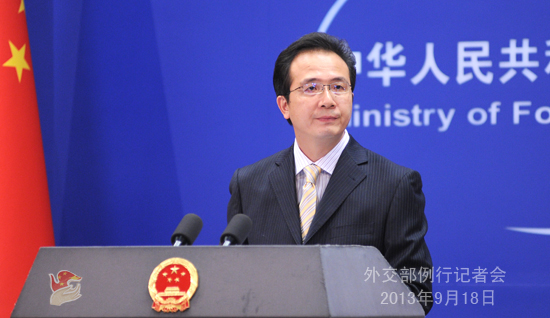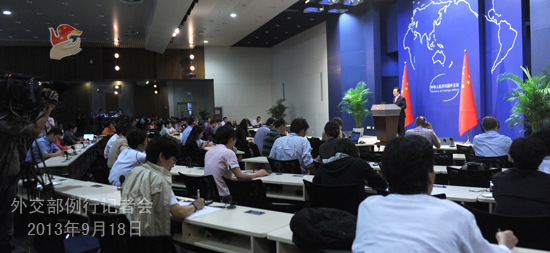 2013年9月18日,外交部发言人洪磊主持例行记者会。