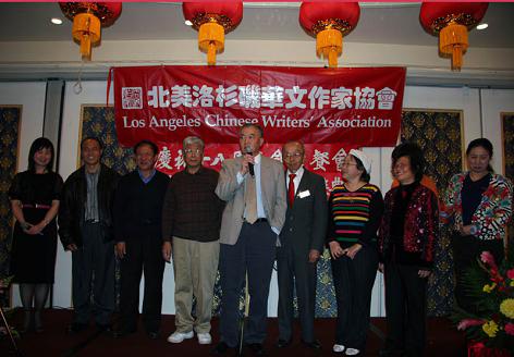 人民网洛杉矶2月16日电 (特派记者管克江)在一个华裔仍是少数族裔的美国社会,用华文写作是件苦差事。但在15日举行的北美洛杉矶华文作协庆祝成立十八周年餐会上,与会华文作家们纷纷表示此心不改,而且他们还有更宏大的目标,即用文字来振奋经济危机中的人们,用文化来连通两岸三地的华人。用武侠小说家萧逸的话说,就是要籍文化之力促进祖国统一。