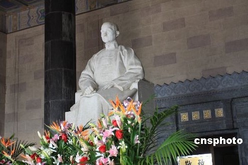 南京中山陵祭堂孙中山像 中新社发 徐文东 摄