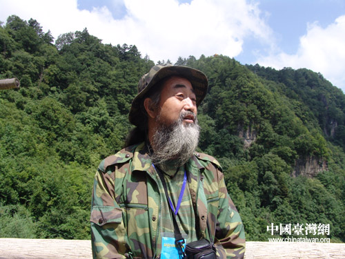 中国台湾网8月3日湖北消息 长发长须、身穿迷彩装、肩背旅行袋的张金星走在神农架林区木鱼小镇的街道上,迎面不时有人和他打着招呼,看起来他是这里的常客了。作为“海峡两岸炎帝神农文化论坛”邀请的嘉宾,记者在武汉认识了这位当代传奇“野人”,更有幸在神农架他的“个人工作基地”对他进行了采访。
