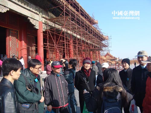 11月27日-30日,第三届海峡两岸沿海地区资源、环境与可持续发展学术研讨会在天津大学举行。30日上午,各位来自台湾地区专家学者参观了故宫博物院。此次行程给他们留下了深刻的印象,被故宫博物院的宏伟气势折服,并希望能够有机会再次到大陆来参观。图为台湾专家学者参观故宫博物院。