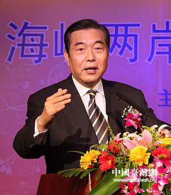 台北世贸中心董事长王志刚在峰会暨签约仪式上致辞。(中国台湾网 钟宝华 摄)
