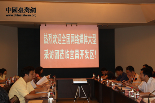 宜昌开发区领导向记者们介绍开发区情况(中国台湾网 高珲 摄)