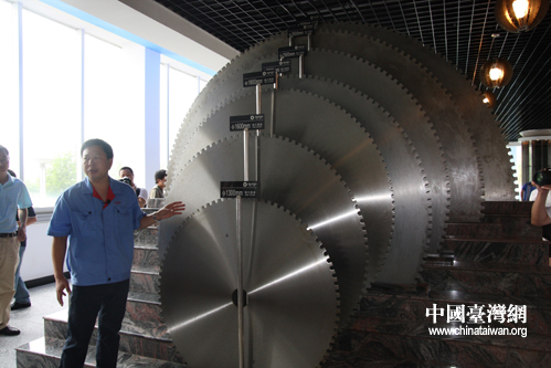 宜昌开发区黑旋风科技园负责人向记者介绍专业化锯片产品(中国台湾网 高珲 摄)