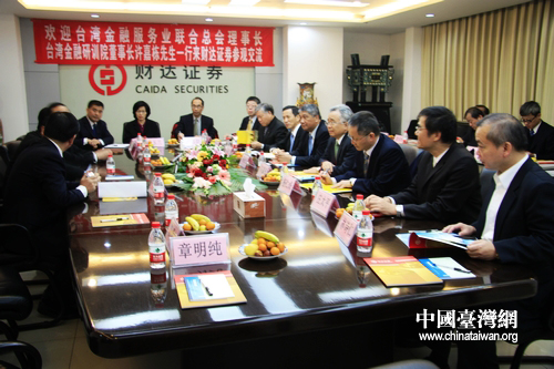 11月30日上午,“台湾金融团”来到石家庄市财达证券公司进行参观访问。(中国台湾网 马迪 摄)
