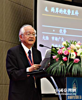 吴敬琏说,目前两岸制造业共同存在着制造能力很强,但缺失国际标准话语权的问题,而实际上近三十年的发展,两岸中国人在一些领域的创造发明已经接近甚至突破了世界前沿。如果能够强化优势互补,以技术研发为基础,加上大陆的资源、劳动力和市场,台湾的先进管理与国际营销经验,他认为,在21世纪的前二、三十年里,就有可能争取到某些新兴产业的国际标准话语权,从而打造出我们中华品牌的拳头产业。