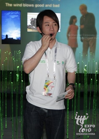 上海企业联合馆志愿者刘谦带参观者畅游“魔方”(图片来源:世博网)