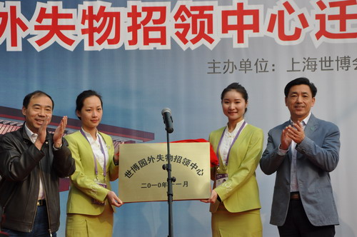 海峡之声网上海站11月8日电(记者张玉龙)今天上午,上海世博园外失物招领中心迁址揭牌仪式在马当路588号淡水湾花园举行。上海世博局副局长丁浩和上海上实物业管理有限公司总经理李胜来等出席仪式。