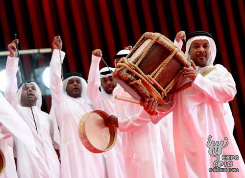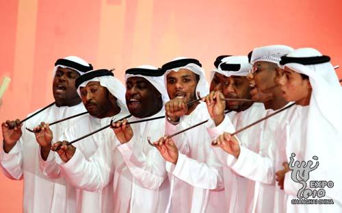 阿联酋民俗演出团在仪式上表演当地独有的民俗歌舞
