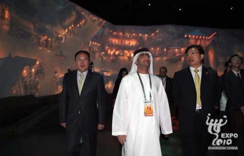 阿联酋嘉宾兴致勃勃地参观中国馆