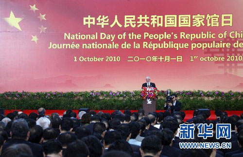 世博网10月1日消息:国际展览局秘书长洛塞泰斯在2010年上海世博会中国国家馆日官方仪式上致辞。