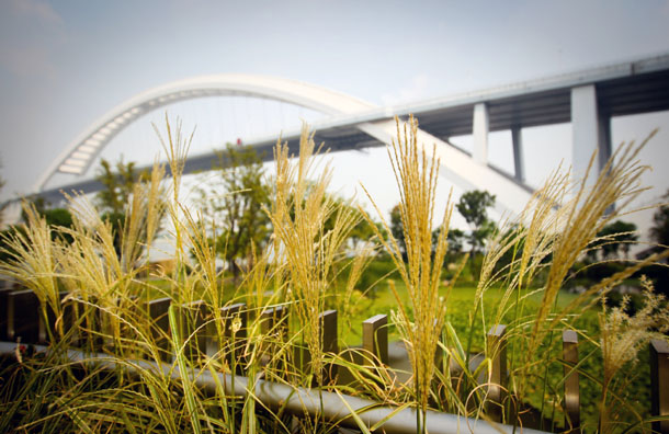 这是10月5日拍摄的上海世博园后滩公园斜发沸石净化区。新华社记者 徐金泉 摄