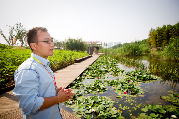 28岁的辛立勋是世博会浦东绿地公园绿化养护管理项目副经理,他见证了后滩公园从设计之初到投入使用的全过程。说起后滩公园,小伙子充满了感情:“其实,这座美丽的公园曾经是钢铁厂和船舶修理厂的废弃厂房。那时由于水质发黑发臭,滩涂的水系里几乎没有鱼虾和鸟类生存。但通过世博会这个契机,历经数年的建设,昔日的废弃厂房已变成美丽的湿地公园,河水清澈见底,自然生态系统已经恢复。”辛立勋说,做到这一点并不容易,公园设计者与建设者都付出了艰辛的努力。