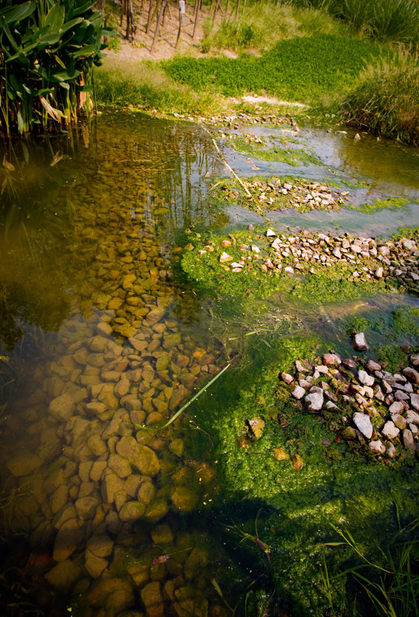 据辛立勋介绍,后滩公园的水系治理摒弃了传统的水污染化学治理方法,采用纯物理和生态技术,利用模拟自然的方法达到水体自净,并恢复和建立完整的生态系统。为了把从黄浦江引入的劣Ⅴ类水净化成Ⅲ类水,后滩公园的“源头”设立着一个3000立方米大小的沉水池,黄浦江水净化“通道”的第一层就是通过沉淀和沙石净化;经过沉淀的水又流进了300米长,落差约3.5米的梯田状流水渠,梯田的每一层都放置了砂石、砾石等,这是第二道过滤;第三个过滤区是沸石净化区,这片区域放置着大量的斜发沸石,斜发沸石是沸石矿物中的一种,能够过滤掉水中的一部分杂质。三道物理净化完成后,河道中的水还要经过由植物和鱼类共同构成的生态“滤网”。