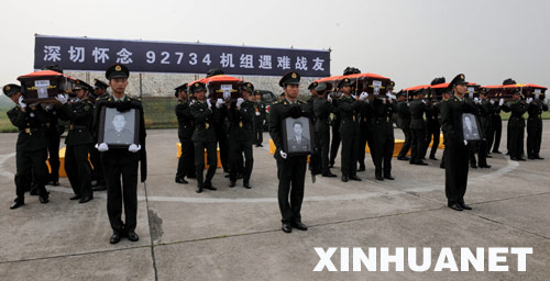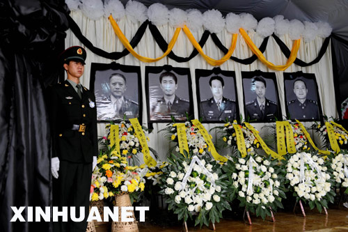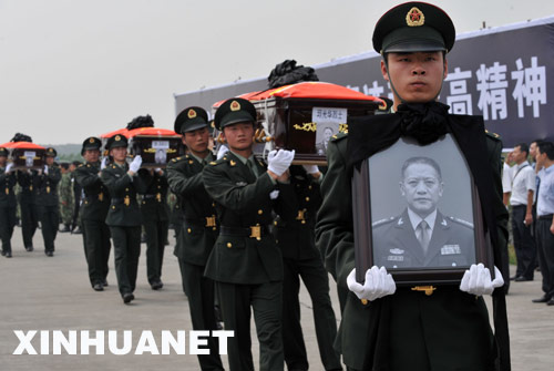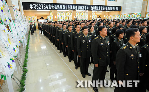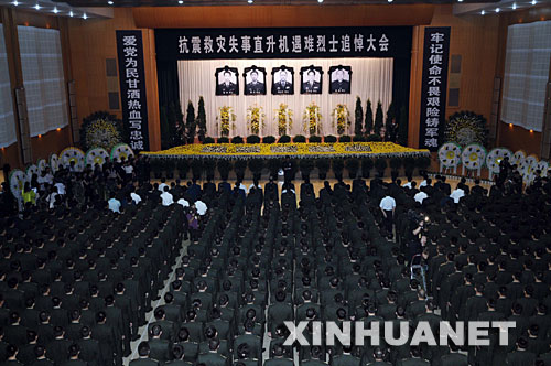6月16日,抗震救灾失事直升机遇难烈士追悼大会在成都举行。驻成都部队、抗震救灾的部分官兵参加了追悼会。 新华社发(高效文 摄)