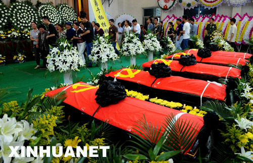 这是6月13日,家属和当地群众在成都殡仪馆向遇难烈士遗体告别。 新华社记者张国俊摄
