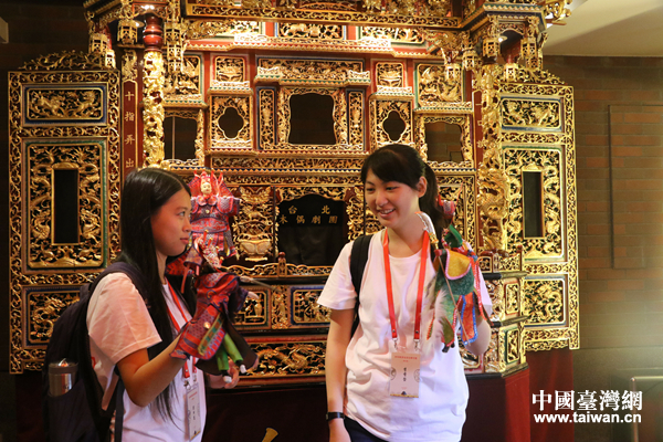 台湾学生在台湾会馆体验木偶游戏。(中国台湾网 汪明珠 摄)