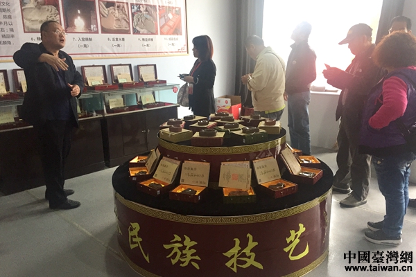 山西省工艺美术大师蔺涛为来宾介绍国家级非物质文化遗产。(中国台湾网 许晗 摄)