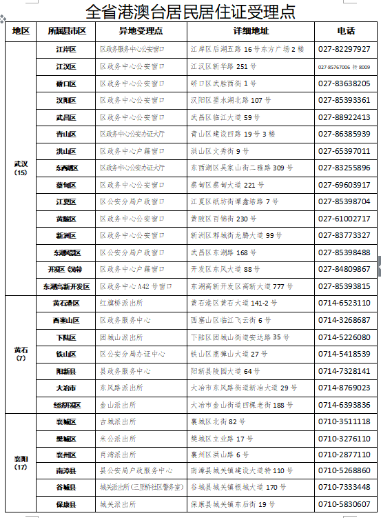 9月1日起,湖北168个受理点可办理港澳台居民居住证