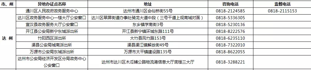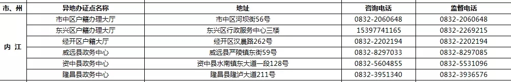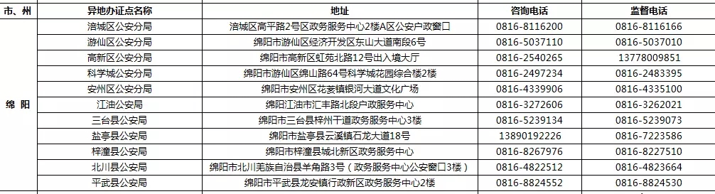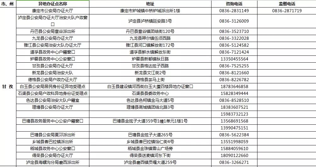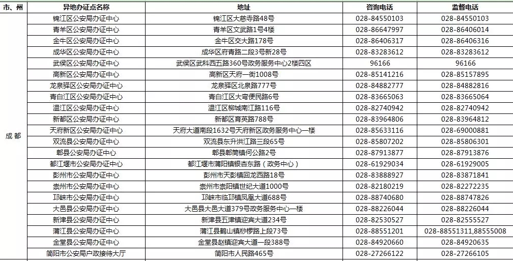 四川省港澳台居民居住证受理点名称、地址,咨询及监督电话: