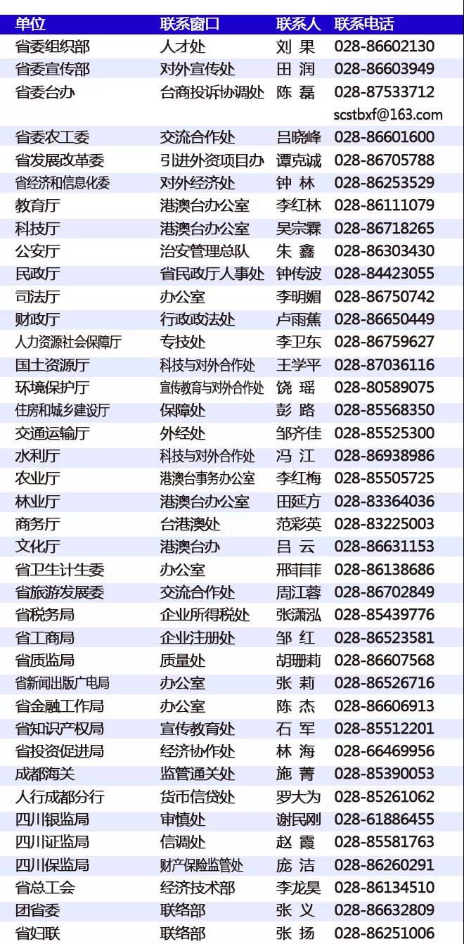 落实“川台70条” 四川39个省直部门(单位)公布联系窗口
