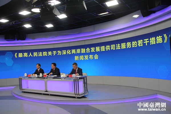 中国台湾网3月26日讯(记者 汪明珠)最高人民法院今天召开新闻发布会,发布《最高人民法院关于为深化两岸融合发展提供司法服务的若干措施》(以下简称“《若干措施》”),这是最高人民法院首次发布的依法全面平等保护台湾同胞合法权益的系统性、综合性措施,也是首次发布的为深化两岸融合发展提供司法服务的规范性、实效性措施。
