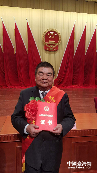 图为刘竹承当选山东首位台籍劳模。(刘竹承供图)