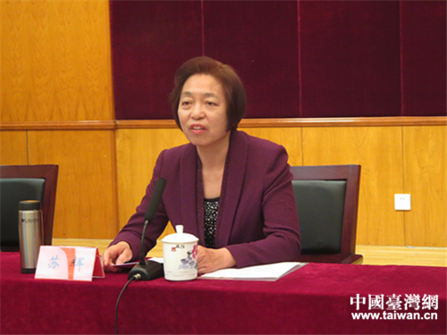 全国政协副主席、台盟中央主席苏辉出席座谈会并讲话。(中国台湾网 马一娜 摄)