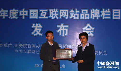 本网“台湾频道”荣膺09年度中国互联网站品牌栏目